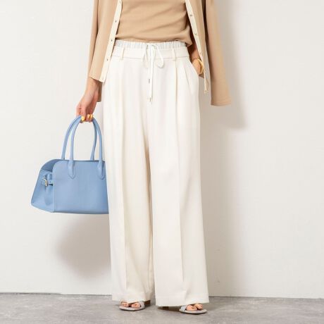 ・Wウエストがポイントのローウエスト風デザインのワイドドパンツ