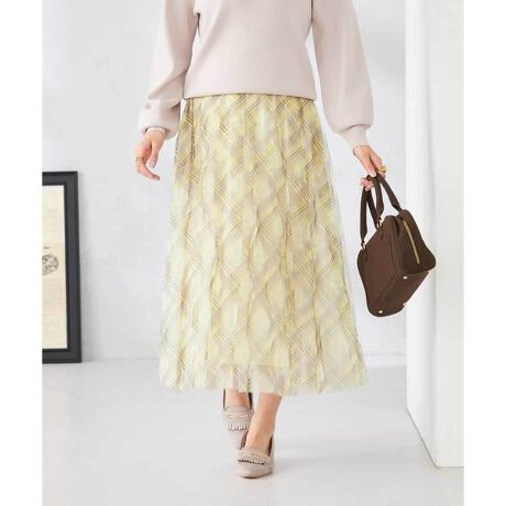 ◆春カラーのチェックが目を引くチュールスカート◆