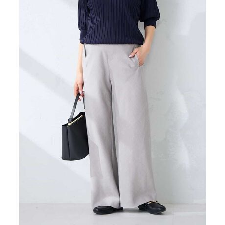 生地をバイアス(斜め)に裁断することで、自然な伸縮性としなやかな落ち感を実現したワイドパンツ。