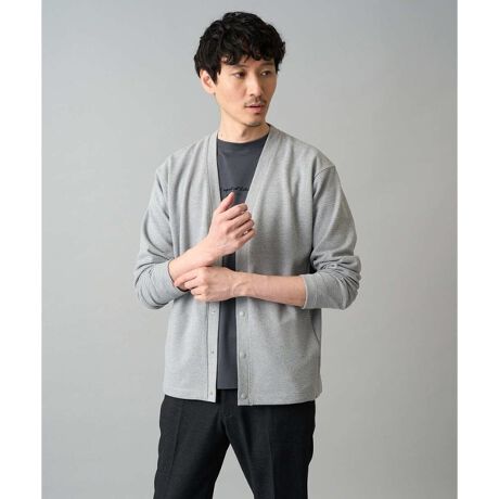 スナップボタンがさり気ないデザインアクセントになっており、シームポケット仕様でクリーンな印象かつ手の出し入れもスムーズにでき、様々なアイテムに合わせやすい汎用性の高いカーディガンです。