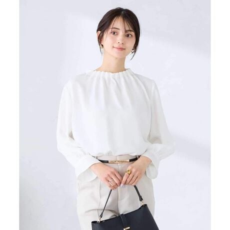首にほどよく沿うタックデザインが華やか&上品な印象のブラウス。