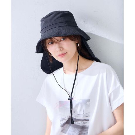 顔まわりから首元までしっかりカバーする日よけ付きUVハット。