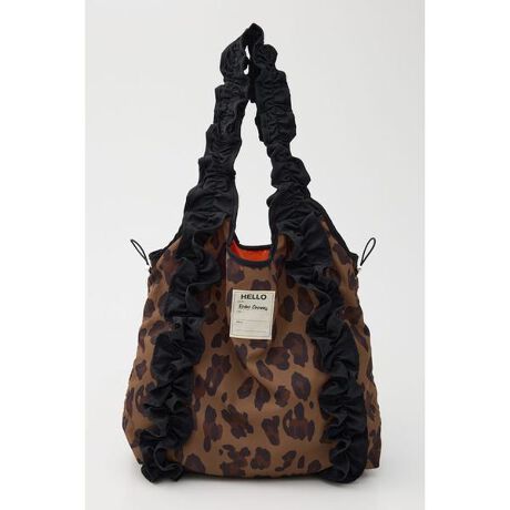 ■ポイントトレンド感満載のフリルデザインのバッグ。レオパード柄とカモフラージュ柄にフリルが重なった甘辛ミックスなデザイン。■ディテールくしゅくしゅとしたハンドルがポイントで、甘くなりすぎないプリント柄が、コーディネートをワンランクアップしてくれます。A4サイズがしっかり入るサイジングなので、通勤・通学はもちろん、普段のデイリー使いもおすすめです。肩に掛けられる長めの持ち手も嬉しいポイントです。■スタイリングワンピースやスカートと合わせてガーリーに、グラフィックトップスやデニムと合わせて甘辛ミックスコーディネートにもおすすめです。ジャケットやカーディガンにさらっと合わせるのも可愛いです。[注意事項]※画像の商品はサンプルです。実際の商品と仕様、加工が若干異なる場合があります。※画像の商品は光の照射や角度、お使いのモニター環境により、実物と色味が異なる場合がございます。※着用、お取り扱いの際は、アテンションタグをご確認ください。
