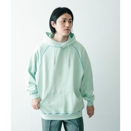 およそ12オンスの、程よく厚みのある裏毛素材で仕上げられたフーディーは、ヴィンテージの風合いが楽しむことのできる、サンバーンド加工(特殊な製法で、色褪せた風合いを出す加工)とガーメントウォッシュが施されています。