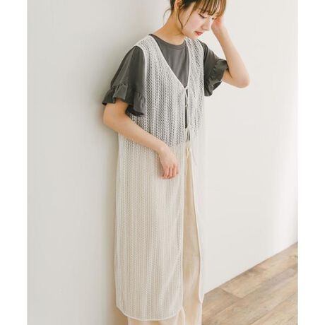 トレンドのメッシュ生地で仕立てたジレワンピース。メッシュの程よい透け感が涼しげな印象で、夏でもレイヤードスタイルを楽しめます。前を開けて羽織ると縦のラインが綺麗でスタイルアップ◎シンプルなTシャツやブラウスなど、手持ちのスタイルにプラスするだけで、簡単にこなれ感&トレンド感を演出できる優秀アイテムです。