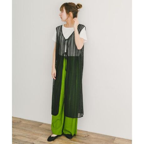 トレンドのメッシュ生地で仕立てたジレワンピース。メッシュの程よい透け感が涼しげな印象で、夏でもレイヤードスタイルを楽しめます。前を開けて羽織ると縦のラインが綺麗でスタイルアップ◎シンプルなTシャツやブラウスなど、手持ちのスタイルにプラスするだけで、簡単にこなれ感&トレンド感を演出できる優秀アイテムです。