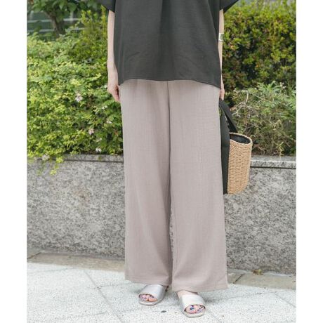 カット楊柳素材のイージーパンツは、涼しく軽やかな履き心地が魅力。柔らかな生地感と、ウエストゴム仕様でリラックス感のある着心地です。普段使いはもちろん、ちょっとしたお出かけにもぴったり。楽ちんなのにおしゃれに決まり、合わせるアイテム次第でカジュアルにもきれいめにも着こなせる万能アイテムです。