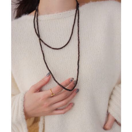 小ぶりのビーズを連ねた軽量仕様で、首元に負担をかけにくくストレスフリー。動くたびにさりげなくきらめき、大人の品を演出します。