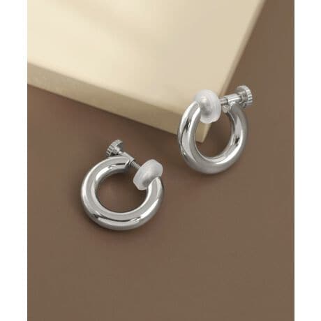 シャープな輝きを放つメタルが、横顔にアクセントを与えるイヤリング。