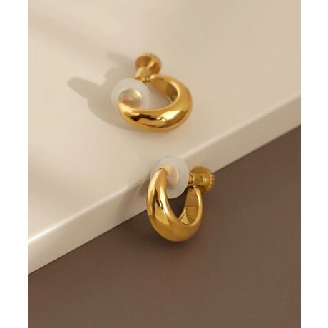 シャープな輝きを放つメタルが、横顔にアクセントを与えるイヤリング。