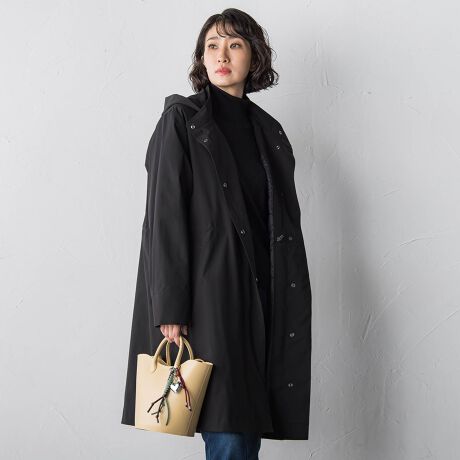 ミドルレングスで腰まわりまであたたかく、ウエストのドロストでシルエット調整も自在です。