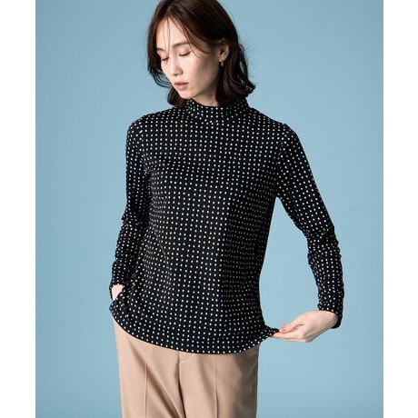 [型番:351678]細かな柄が映える大人の上品ハイネックインナー細やかな総柄がコーデに表情を添えるハイネックトップス。ほどよい伸縮性となめらかな肌あたりで、重ね着しても快適に過ごせる一枚。ジャケットやニットのインナーとしても使いやすく、シンプルなスタイリングにアクセントをプラスしてくれます。デイリーに取り入れやすいデザインで、季節を問わず活躍する万能アイテムです。