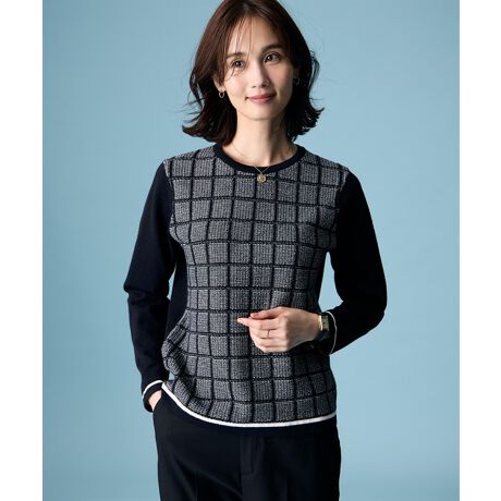 チェックジャガードニットプルオーバー【ハンドウォッシャブル】