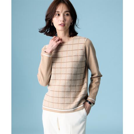 チェックジャガードニットプルオーバー【ハンドウォッシャブル】