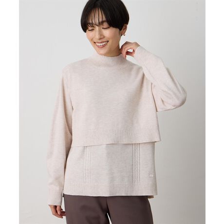 [型番:492820]上品に重ねて楽しむ大人のニットアンサンブル繊細な編み模様がほどよい表情を添えるニットアンサンブル。やわらかな風合いで着心地がよく、重ねても単品でも使いやすい万能デザイン。首元はすっきりとしたハイネックで、季節らしい装いを演出します。スカートと合わせたきれいめコーデはもちろん、デニムで大人カジュアルにも。デイリーに活躍する一着です。