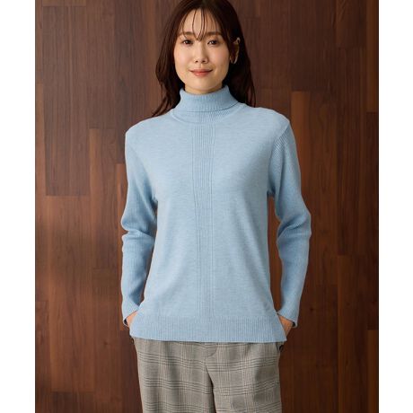 [型番:522418]一枚ですっきり上品な冬の定番タートル柔らかく着心地の良い素材で仕上げたタートルネックプルオーバー。フロント中央の縦ライン編地がさりげなくスタイルアップを叶え、シンプルながらメリハリのある印象に。袖と裾のリブ切替が程よくフィットし、アウトでもインでもバランスよくまとまります。コートインにも使いやすいすっきりシルエットで、デイリーに着回せる万能ニットです。
