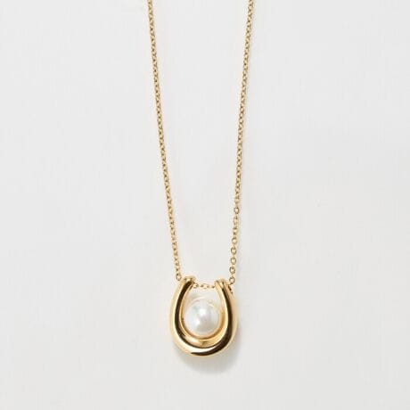 【金属アレルギー対応】メタリックパールホースシューネックレス ゴールド ステンレス/馬蹄/ギフト