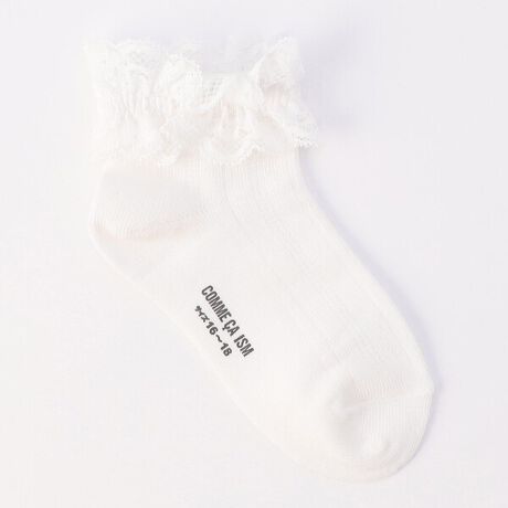 [型番:98-83QO02-206]《デザイン》履き口に小花柄レースを叩き付けた女の子らしいデザインです。丈はショート丈です。きちんと感のあるワンピースやスカートから、カジュアルスタイルのはずしアイテムとしてまで幅広く使っていただけます。ソックス部分には、針抜きのライン柄を入れています。履き心地を良くする為、あえて足底には柄を入れていません。《素材》伸縮性に優れたソックスに適した糸を使用しています。
