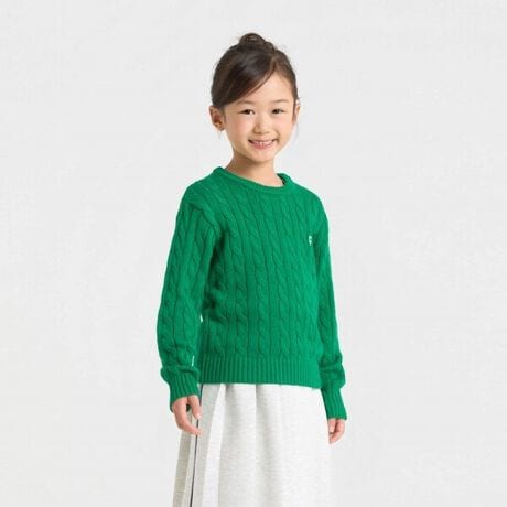 全体に編み込まれたケーブル柄が上品なクルーネックのニットプルオーバーです。
