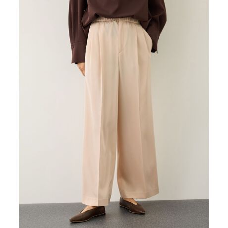 ツータック入りで、ウエストゴム仕様のイージーな履き心地が魅力のワイドパンツ。