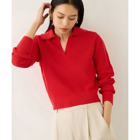 すっきりとしたスキッパーデザインが程よい抜け感を演出し、顔まわりをシャープな印象に。程よくゆとりのあるシルエットでリラックスした着心地ながら、マーセライズドコットン100%ならではの上品な光沢感が、きれいめな印象をキープします。