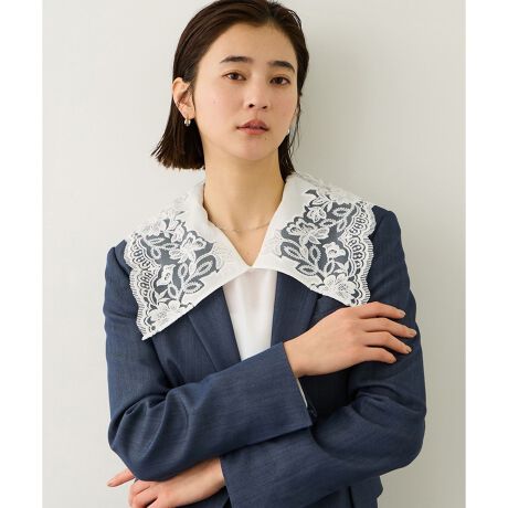 襟部分には、チュールレースとローン素材を組み合わせた繊細なレースを使用。