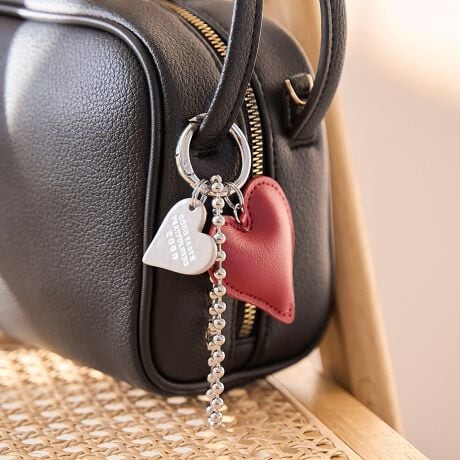 異なる素材とサイズのハートモチーフを組み合わせた、キャッチーなデザインのチャーム。