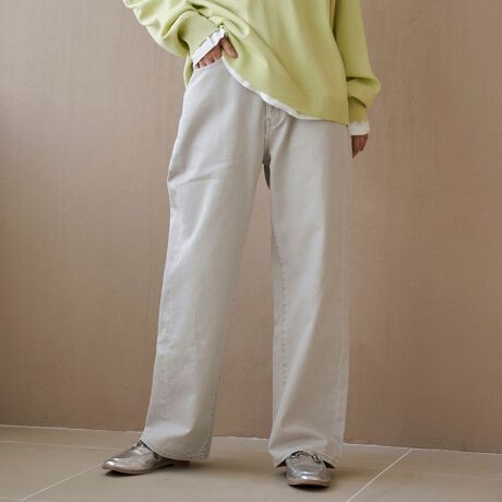 今時期はスウェットやニットとの組み合わせで、ゆるっとした抜け感コーデを楽しめます。