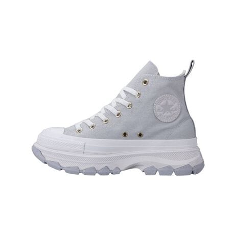オールスター (R)のソールアレンジ・レディース向けディテールアレンジモデル。オールスターとトレッキングシューズをモチーフにしたボリュームのあるアウトソールを合体したデザイン。ニュアンスカラーのアッパーをベースに、ラインを同色にしたテープ、シャンパンゴールドのハトメ、ニュアンスグレイのアウトソール、スエードのアンクルパッチ等のディテールを採用することで上品なボリュームスニーカーに仕上げたデザイン。厚みのあるE.V.A.ミッドソールや防滑性を意識した意匠のアウトソールによりクッション性と防滑性を向上。