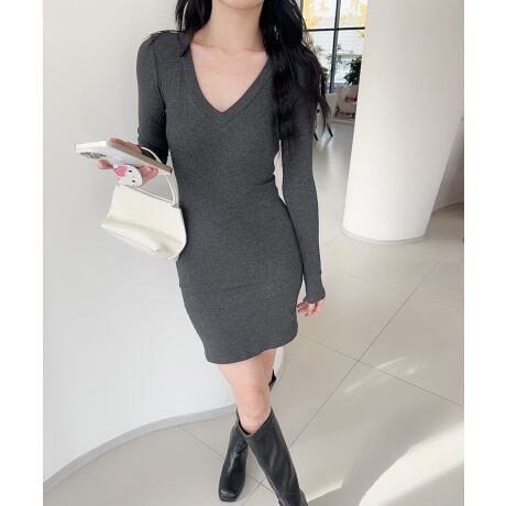 リブ編みが縦のラインを強調し、身体のシルエットを美しく引き立てるワンピース。