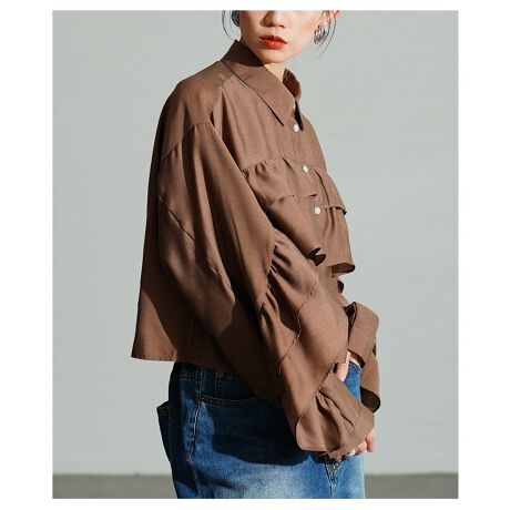 ふんだんにあしらわれたティアードフリルがシンプルなシャツにモードな個性をプラス。お手持ちのデニムやスカートに合わせるだけでコーデが一気に華やぎます。