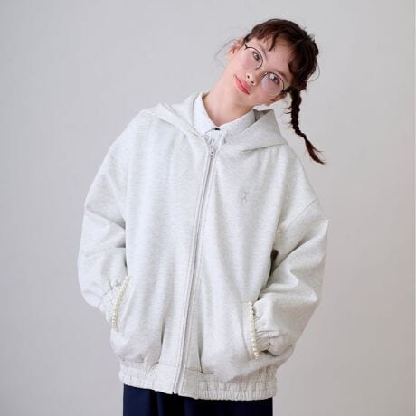 ルーズ感のあるシルエットが可愛いダブルジップパーカです。