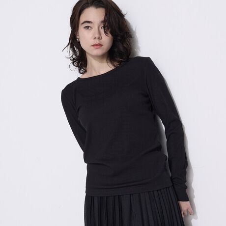 ニットプルオーバー(商品番号:21-01IO01-206)の襟ぐりから、ちらっと見える位の絶妙なネックまわりの大きさにしています。