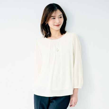 ジャージドッキングのスーツインナーブラウス。