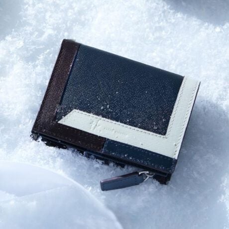 トリミングを施したようなデザインとコンパクトサイズが特徴のミニウォレット。