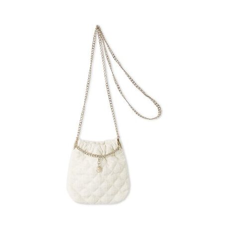小さなチャーム付きのチェーンを使用した、巾着型のショルダーバッグ。