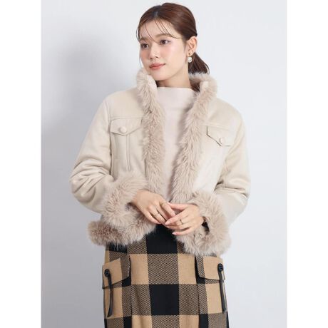 リアルな表面感が高級感を引き立てるフェイクムートンジャケット。