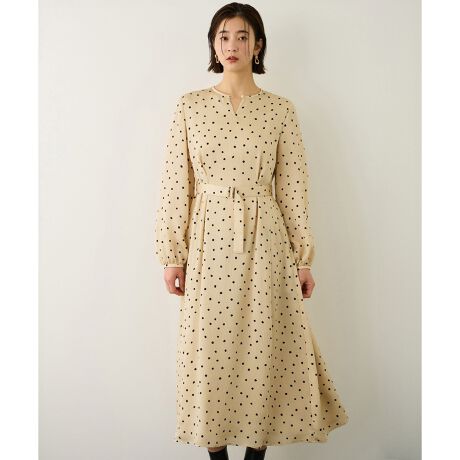 ドットプリントウエストベルトワンピース(品番: GGE26010)