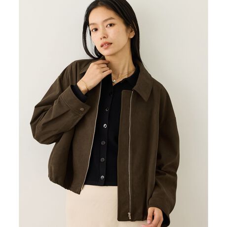 裾にギャザーを寄せることで、女性らしい柔らかな印象で着用できる人工皮革のブルゾンです。裾の分量は脇のドローストリングで調整可能です。素材を活かしたミニマルな佇まいは、パンツにもスカートにも合わせやすいバランスです。
