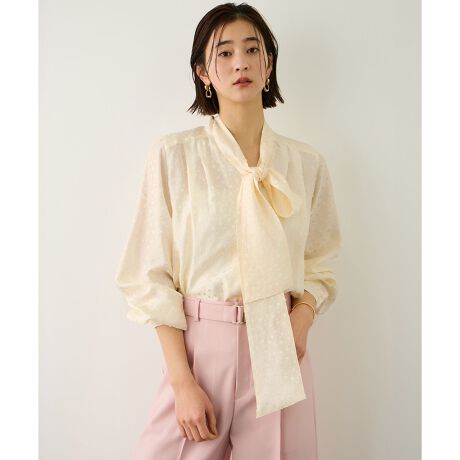 程よく開いた襟元が、顔まわりをすっきりと見せてくれるブラウス。