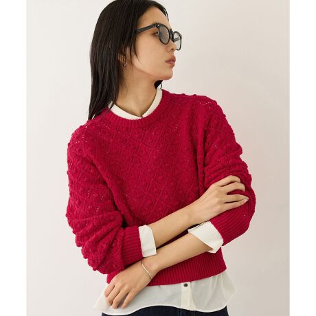 リングヤーンならではの表情豊かな素材感で、1枚でも存在感のある仕上がりに。季節感のある大人フェミニンなデザインで、春先のスタイリングにおすすめのニットです。