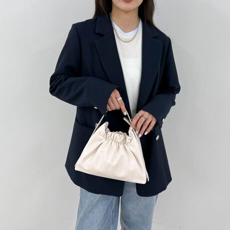 持つだけでこなれるギャザー三角ワンハンドルバッグ