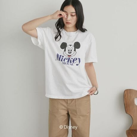 人気キャラクター「ミッキーマウス」がアクセントになったヴィンテージライクなTシャツ。
