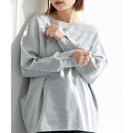 抜け感のある袖スリットデザイン。スリット上部にさりげなくあしらったパールが、程よい華やかさをプラスします。