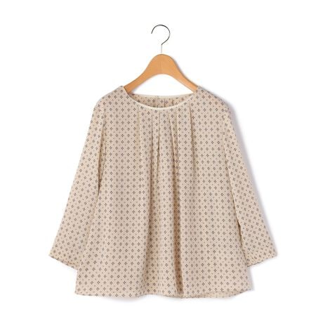 [型番:78262273011]軽やかなポリエステル生地で仕立てたジオメトリック柄の7分袖ブラウス。さらっと着こなせるプルオーバータイプで、ほどよい開きのラウンドネックや柔らかなタックデザインが女性らしい印象です。合わせるボトム次第でカジュアルにもきれいめにも着用でき、同生地のスカートとセットアップでも楽しめます。※商品画像はサンプルを使用しているため、実際の商品と色味などの仕様が異なる場合がございます。予めご了承ください。