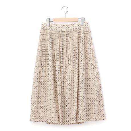 軽やかな素材を細いプリーツ仕立てにしたエレガントなスカート。プリーツは途中で折り目がなくなり、裾は優美に揺れる仕組み。きちんとした印象でもかしこまりすぎずに楽しめるのが魅力です。クラシカルなジオメトリックパターンは、よそ行きコーデにも最適。膝が隠れる程度の着丈は、大人の装いに最適です。