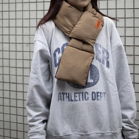 ボリューム感のあるパファーデザインで、首元にしっかりフィットしながらスタイリングのアクセントにもなる中綿マフラー。裏側はやわらかなファー素材を使用しており、肌当たりが良く、防寒性も抜群です。ふわっと暖かいのに軽量で、コンパクトにたたんで持ち運びができるのも嬉しいポイント。デイリー使いはもちろん、旅行や外出時にも活躍する万能アイテムです。