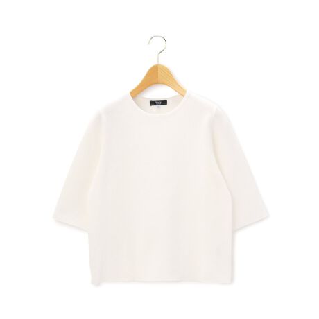 シンプルで上品なクルーネック仕様の5分袖ニットプルオーバー。平らな編み目とさらっとした肌触りが魅力のミラノリブニット生地を使用しています。フィットし過ぎないシルエットや長過ぎない着丈もこだわりのポイント。合わせるボトムやアウターを選ばず、同生地のジャケットとアンサンブルでも着用可能です。