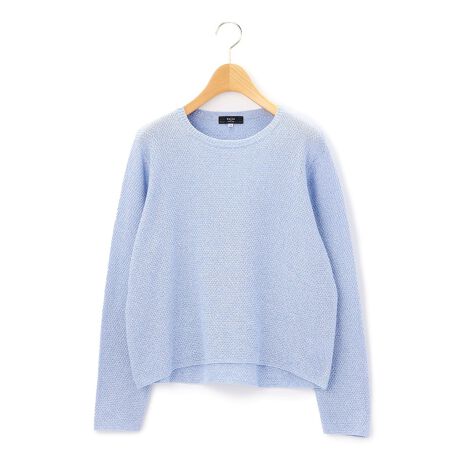柔らかな春色のラウンドネックニットプルオーバー。シンプルなデザインながら、立体感のある鹿の子調の編み目が印象的なアイテムです。シルエットは品の良いコンパクトな作りで、長すぎない着丈がポイントに。タックインスタイルはもちろん、アウトでもすっきりしたバランスで着こなせます。