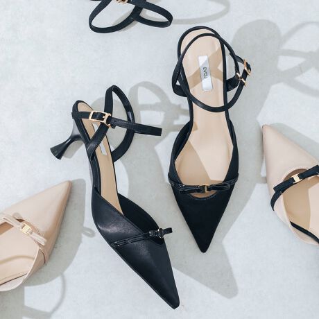 大人気のリボンパンプスに新デザイン登場!ゴールド金具を取り入れた華奢なリボンが上品かつ高級感のある足元を演出。女性らしい細身のアンクルストラップは5段階サイズ調節可能◎フック式なので着脱が楽ちんなのも嬉しいポイントです。ふかふかクッション性のある中敷き入りで、足裏への負担をグッと軽減してくれます。約5.5cmのヒールはどの角度から見ても美しく、接地面が広いのでグラつく心配なく安定感のある履き心地!普段使いはもちろん、パーティーやオケージョンシーンにもおすすめです。